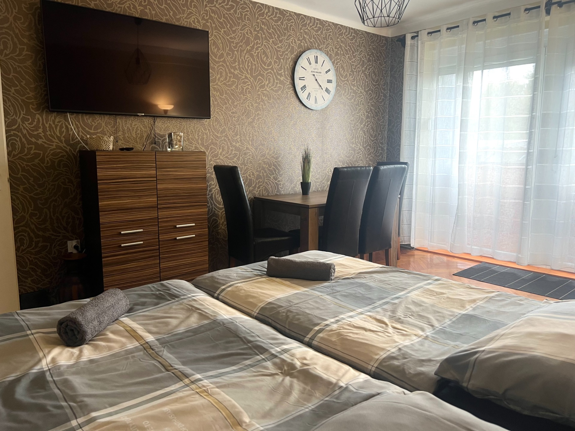 Fontos tudnivaló, hogy egy időpontban kizárólag egy foglalást fogadunk, így a teljes lakás mindig csak az Önöké – akkor is, ha csupán egy fő érkezik. A klíma használata benne van az árban, ahogy a zárt udvari parkolás és a korlátlan Wi-Fi is. Kerékpárt a lakásba nem lehet behozni, de az udvaron biztonságosan elhelyezhető.